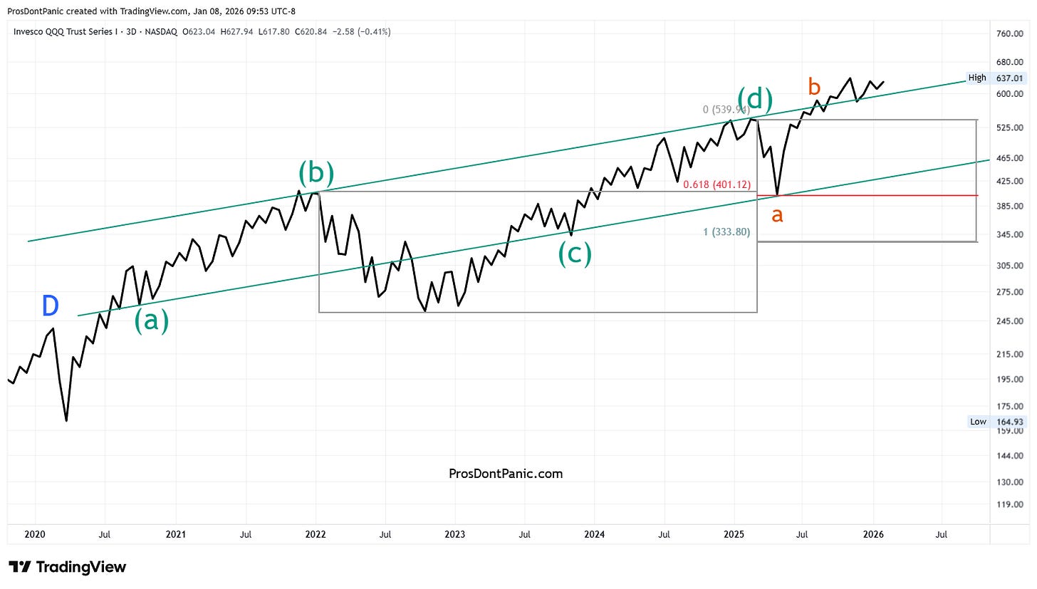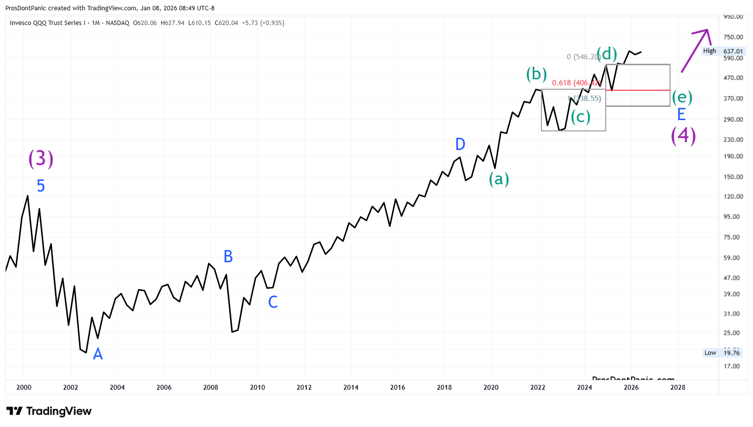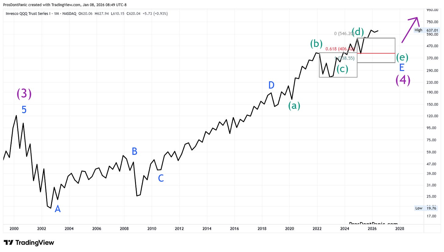 QQQ is completing a 26-year running bear market correction. We need to get through the end of Wave-(4) which is completing wave-E then the real bull market will begin.