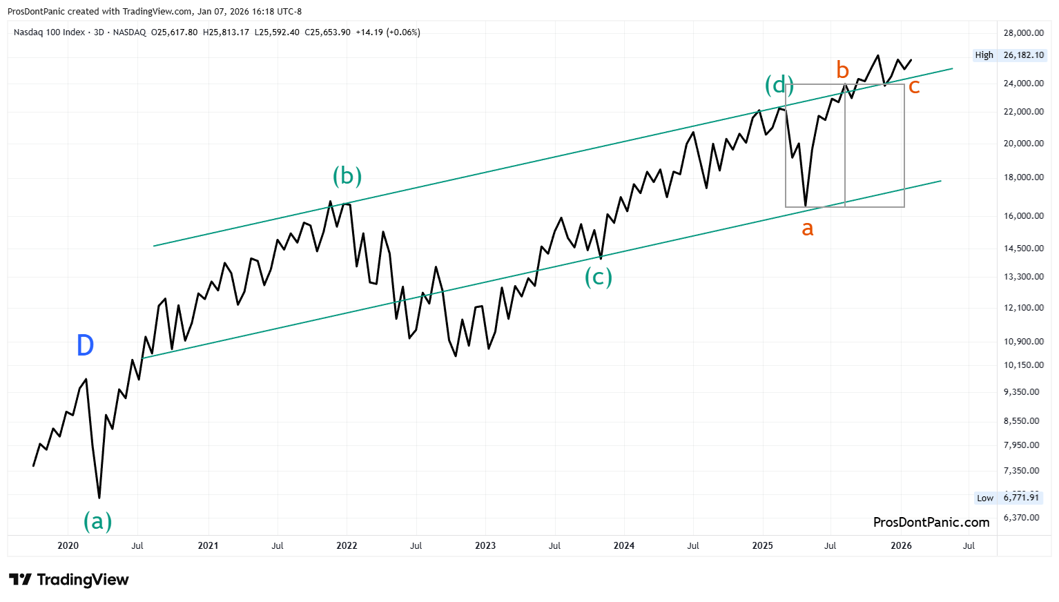 NDX is completing the same 26-year running bear market correction as the S&P 500 which everyone thought was the “bull market”. We need to get through the end of Wave-(4) then the real bull market will begin.