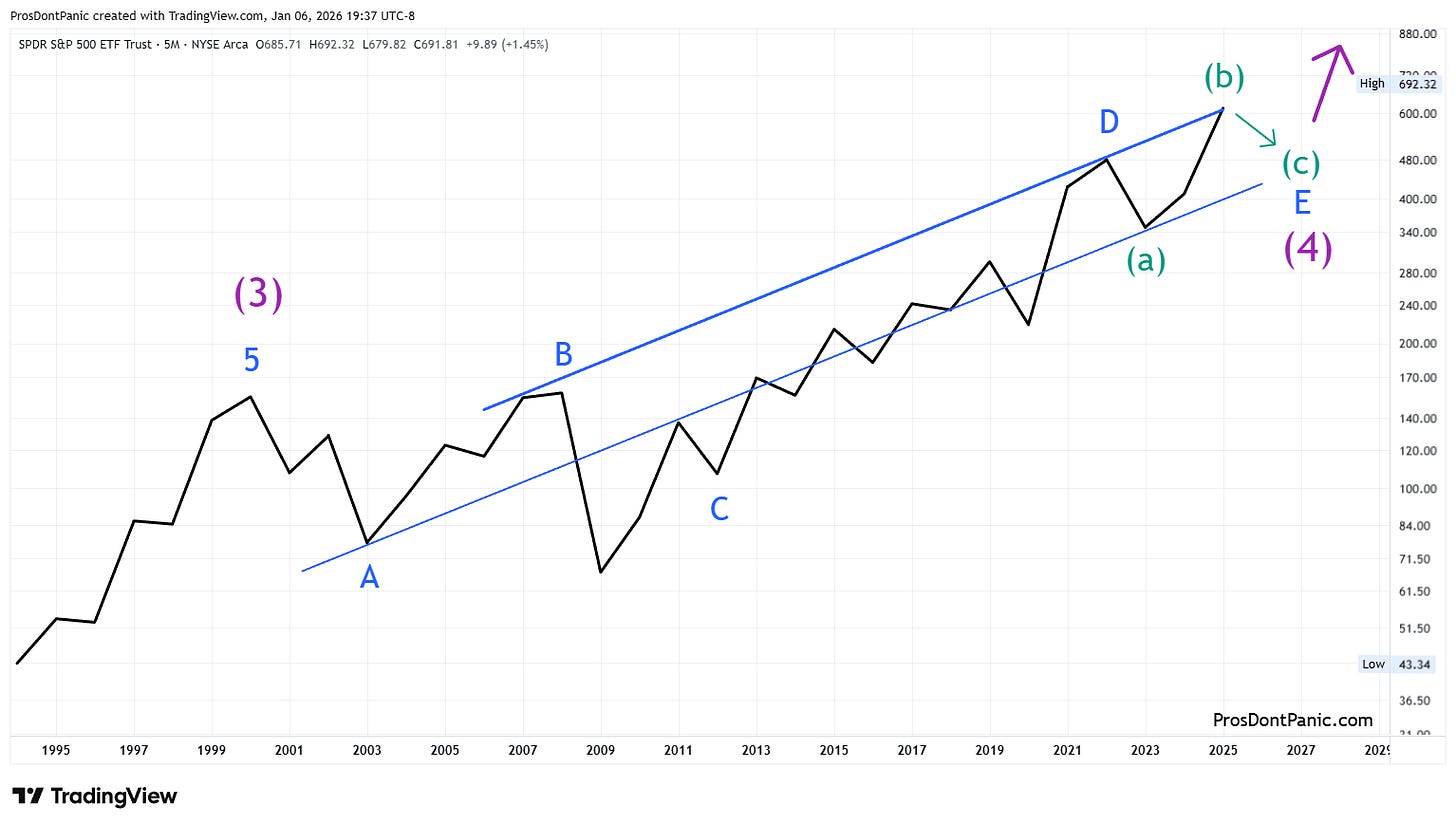 SPY is completing a 26-year running bear market correction. We need to get through the end of Wave-(4) which is completing wave-E then the real bull market will begin.