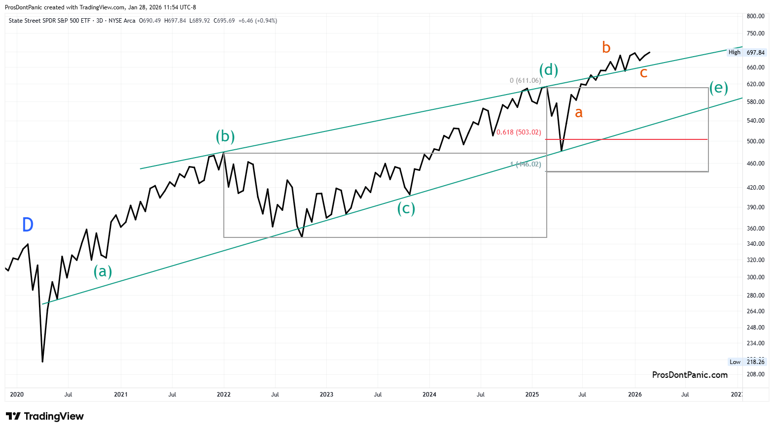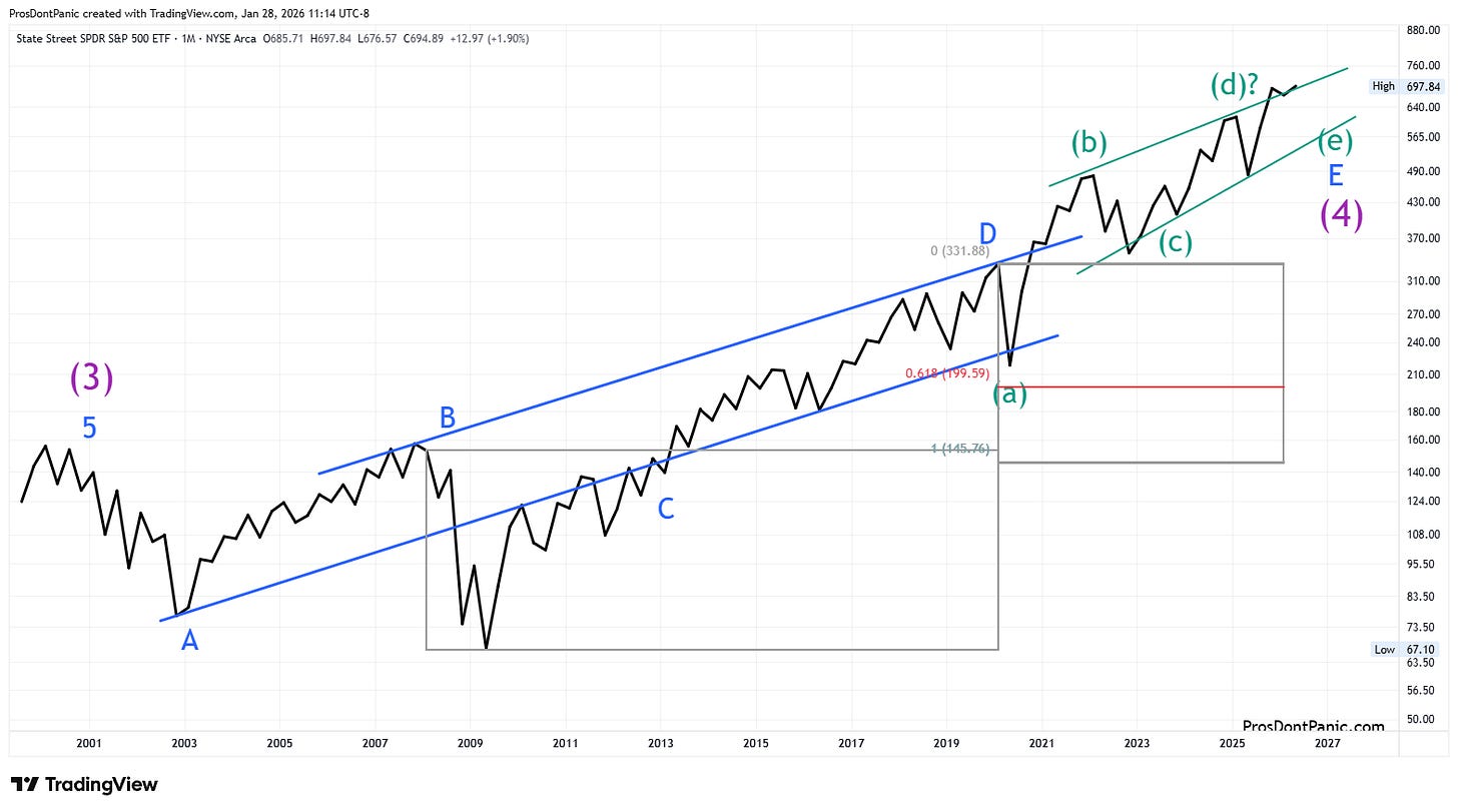 SPY is completing a 26-year running bear market correction. We need to get through the end of Wave-(4) which is completing wave-E then the real bull market will begin. A significant break to the upside (new trend) will signal the start of wave-5 and mark the low for the next 20-30 years.